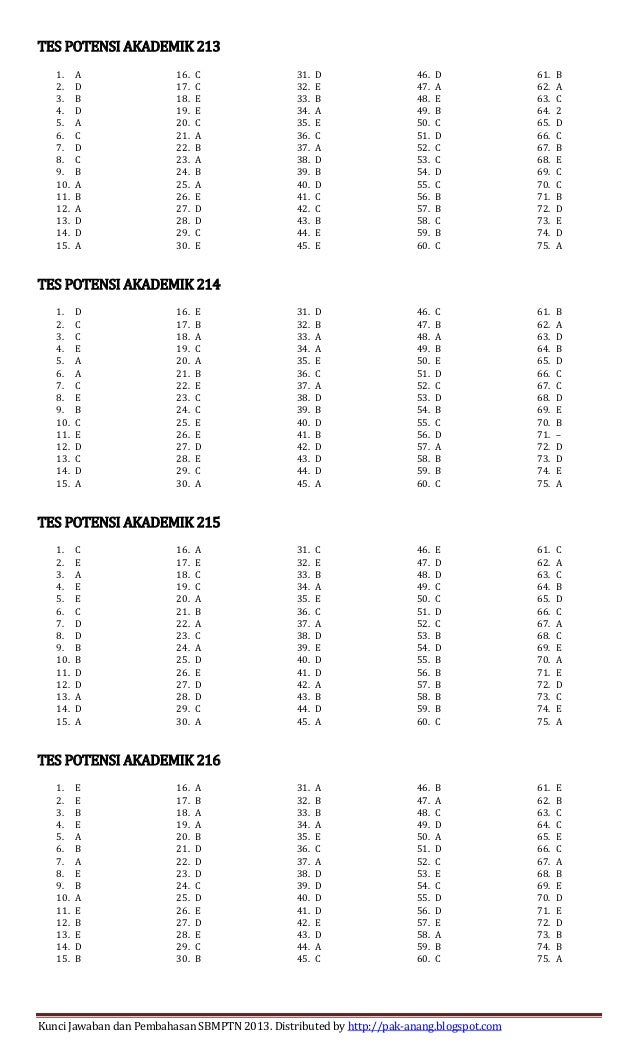 Kunci jawaban semua kode soal sbmptn 2013 kemampuan tpa, tkdu, sainte…