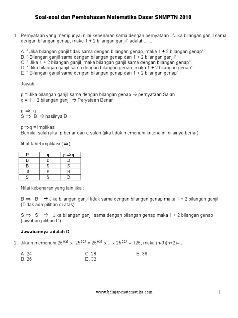 Soal-Soal Dan Pembahasan Matematika Dasar SNMPTN 2010